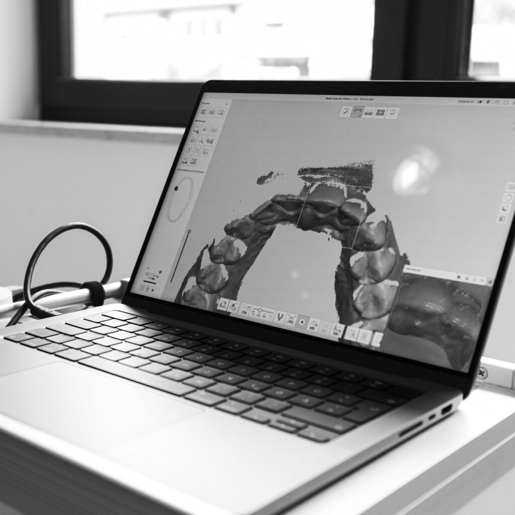 Die Behandlung von Parodontitis erfordert ein strukturiertes und individuell abgestimmtes Vorgehen. Zu Beginn steht eine sorgfältige Diagnostik, bei der wir das Zahnfleisch und die Zahnfleischtaschen gründlich untersuchen und Entzündungsparameter erfassen. So können wir das Ausmaß der Erkrankung präzise einschätzen und die Therapie gezielt planen.